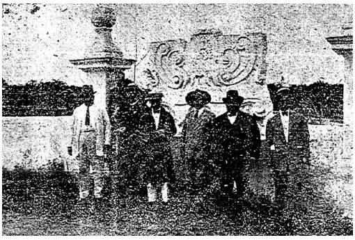 A Figura 8 permite comparar a forma das colunas como retratada por Niemeyer, em 1848, e por Corrêa, em 1939, com sua forma atual. Na representação de Niemeyer, as pinhas possuem contorno alongado, e não o arredondado já presente na mais antiga fotografia do dístico encontrada nessa pesquisa (Figura 9), de autoria do engenheiro Américo Netto52, captada em 1925. Fotografias em ângulo semelhante, publicadas pelo jornal O Globo, em 1927,53 e por Ferreira,54 em 1929, também exibem pinhas arredondas (Figuras 10 e 11). Freitas55 afirma que, no passado, as pinhas que ornavam as pilastras eram de louça do Porto, sendo possível que as pinhas ilustradas por Niemeyer correspondam a tais peças.