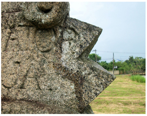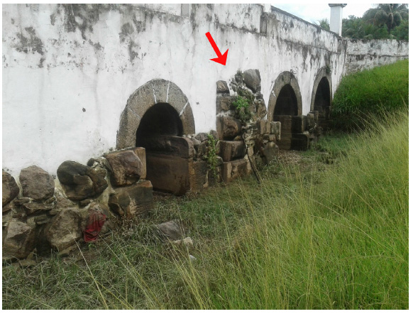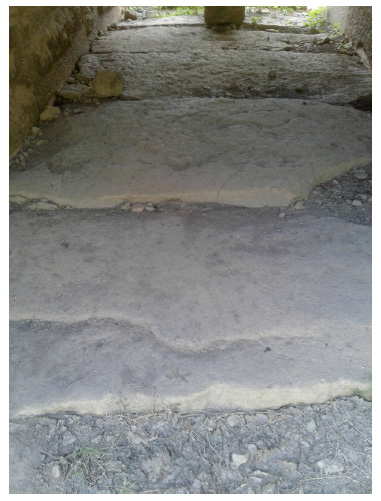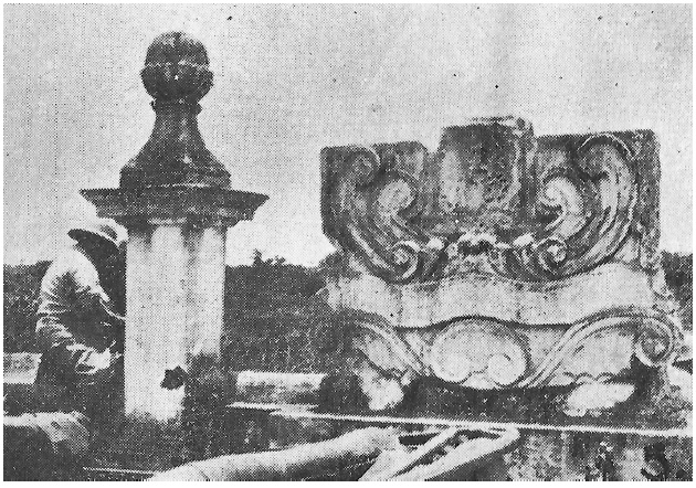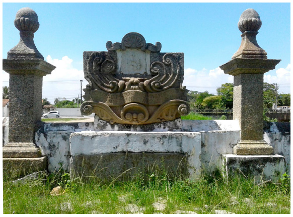 […] invadida pelo mato e deteriorada pela ação do tempo. É uma curiosa obra que data de dois séculos numa escultura no granito de grão fino contendo uma inscrição em latim de tema religioso.28