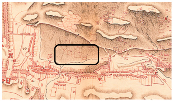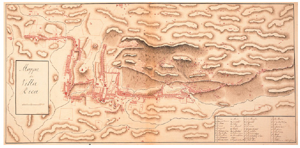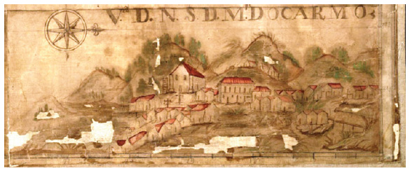 Outra imagem do mesmo período foi o Mapa de Vila Rica, de autoria atribuída a Manoel Ribeiro Guimarães, a mais antiga representação cartográfica remanescente da capital mineira (figura 4), a descrever a implantação urbana das propriedades então situadas no complexo do Palácio Velho.7