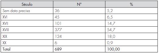 Minas Gerais, cuidada pessoalmente por Andrade, filho da terra, consolidou 165 bens em sua época de presidente do órgão. Destes, 96 do século XVIII. O levantamento de Rubino (1996) apresentado na tabela 1 ressalta: