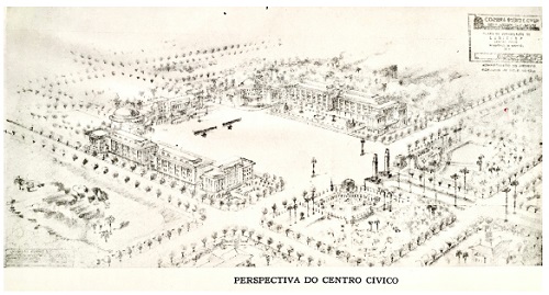 O artigo de Azevedo teria influenciado também as escolhas para o Centro Cívico.59 Isto é, o governo decidiu finalmente por uma proposta moderna, preterindo a concepção tradicional para o novo complexo administrativo incluída no plano Agache (figura 1). Uma das primeiras ações da Ceoc foi encomendar um novo projeto para o centro, “sendo escolhido o que concretizava as tendências da arquitetura contemporânea”.60