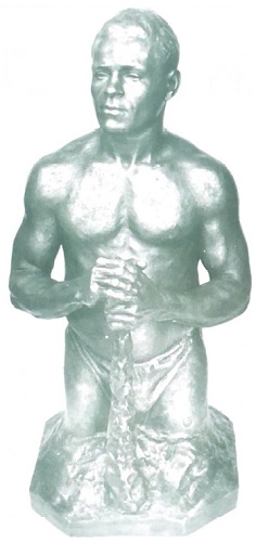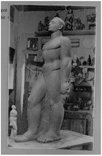 De outro lado, complementando a perspetiva do governador, a escultura de um Torso de Trabalhador modelado por Stenzel na Escola Nacional de Belas Artes em 1941 oferece mais pistas (figura 6).126 Homem forte, de músculos bem definidos e expressão serena, mas decidida, seu trabalhador de traços brancos aproximava-se da figura preparada por Cozzo em sua oficina. Assim como o escultor paulista sugerira a Stenzel, numa carta, modernizar as figuras que havia desenhado para o painel em baixo-relevo,127 o gigante de granito pode ter sofrido influência do trabalhador de 1941, como um parente modernizado. O mais importante, porém, é o parentesco entre o modo como Stenzel concebera o trabalhador, no início dos anos 40, e o modo como ele e Cozzo concebiam o Paraná “adolescente” ou, noutra versão, “o homem que desbravou” o estado, no início dos anos 1950: tão branqueado e heroico quanto distante da representação popular e mestiça elaborada pelos intelectuais e artistas modernos.