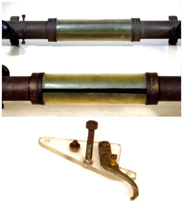 O valor histórico do tubo do nível de suspensão (Figura 8a) reside na carga simbólica agregada aos testemunhos de serviços cuidadosos dos técnicos de manutenção da luneta nº 10.783 de Bamberg, também constatada em relação à lente objetiva e sua tampa. Para que o processo de degradação do tubo de reposição seja desacelerado, recomendou-se que um filme de filtragem UV em poliéster seja adquirido a fim de envolver externamente o tubo adaptado ao nível de suspensão.