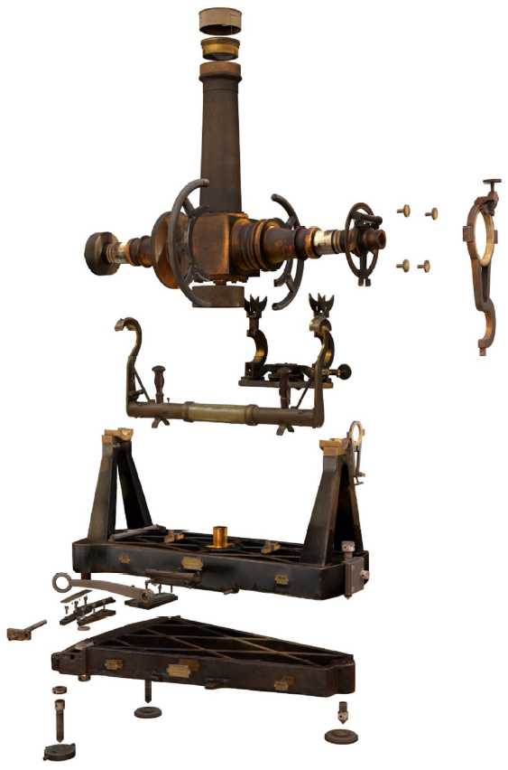 As 25 partes da luneta e os 5 objetos que foram dela dissociados, guardados separadamente em diferentes momentos de sua trajetória, foram examinados e seu estado de conservação determinado pelos autores.64
