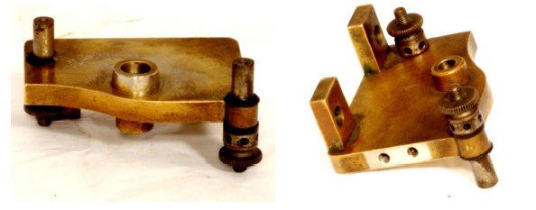 O catálogo de 1904 oferece informações sobre os acessórios do Talcott44 cujos sulcos de encaixe no eixo mecânico não eram ocupados por nenhuma peça no momento da musealização. Essas peças foram incorporadas ao Mast, como tantas outras, avulsas e sem identificação (Figuras 5b e 5c).