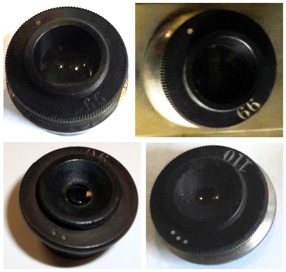 As três lentes oculares da luneta encomendada para Potsdam foram descritas no catálogo: ampliavam 44, 65 e 86 vezes. Já ao exemplar do Mast reúnem-se quatro oculares (Figuras 3a, 3b, 3c e 3d), puncionadas com suas respectivas ampliações de 66, 66, 90 e 110 vezes.