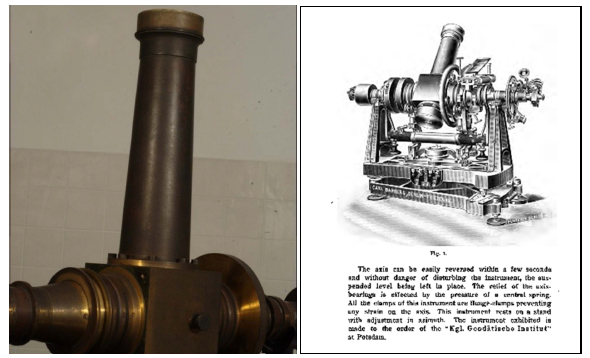 A denominação do exemplar acotovelado exposto em 1904 - “instrumento de passagem portátil com luneta acotovelada” - muito se assemelha à descrição adotada pelo ON quando do levantamento patrimonial nos inventários periódicos. Esses exemplares que são fixos em pilar, portanto, foram descritos como portáteis tanto pelo fabricante como pelos profissionais responsáveis pelos inventários no Observatório.
