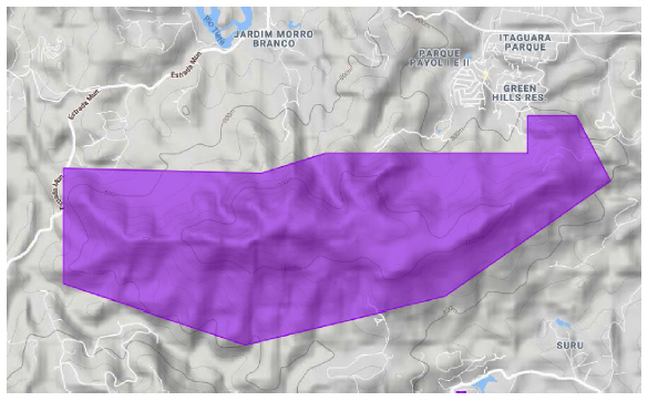 Já o tombamento da Serra do Japi, Guaxinduva e Jaguacoara foi um marco pelo desafio e complexidade do conjunto de serras, o que exigiu um desenho de preservação inteiramente novo. A forma assimétrica do conjunto dificultava a utilização de cotas altimétricas como critério de delimitação, o que vinha sendo usado, por exemplo, no tombamento do Maciço da Jureia. Nesse sentido, Ab’Saber inovou ao definir uma poligonal irregular, delimitada a partir de pontos georreferenciados em coordenadas geográficas, o que viabilizou incluir na área tombada um conjunto de serras e um mosaico de ecossistemas (figura 3). Essa experiência foi repetida, na sequência, em outros dois tombamentos: o da Serra do Boturuna e o da Serra de Atibaia. A poligonal geométrica definida a partir de coordenadas geográficas, em todos esses casos, permitia delimitar e circunscrever o corpo principal desses acidentes topográficos e geológicos. No caso de Atibaia, a poligonal geométrica (figura 4) visava incluir três unidades de formas de relevo identificadas: o domo da Pedra Grande, a face da serra voltada para oeste e os baixos patamares de piemonte.36 No caso do Boturuna, a poligonal viabilizou circunscrever o corpo principal da pequena serra e deixar como área envoltória os baixos patamares e colinas que a envolvem (figura 5).