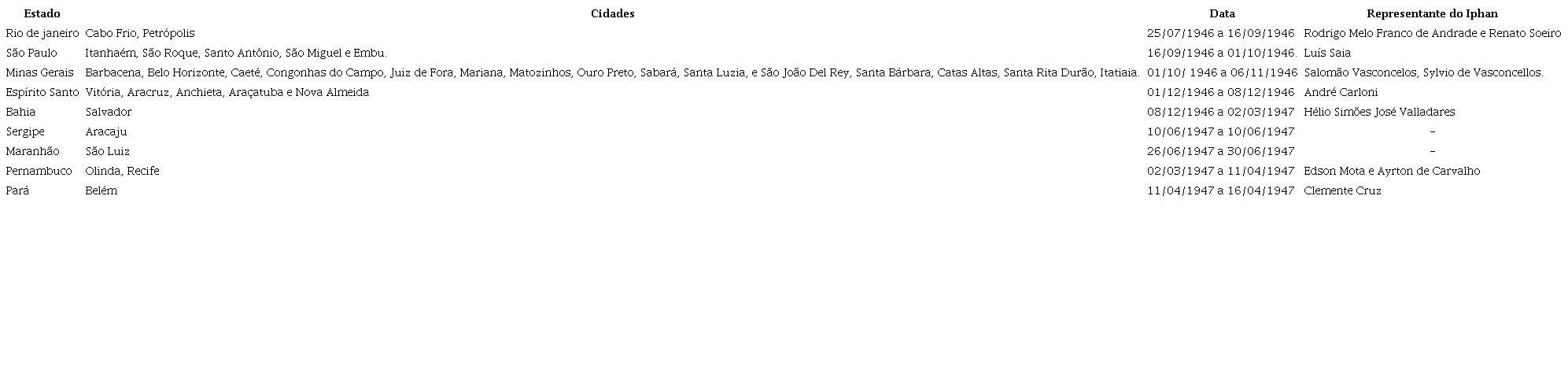 Passados dez anos de seu primeiro contato com o país, Robert Smith retornou ao Brasil em 1946, com apoio da Fundação Guggenheim. O ano de 1946, pós-Segunda Guerra Mundial, marcava o fim do Estado Novo e a inserção de um regime democrático com o governo de Eurico Gaspar Dutra. Nessa segunda visita, as redes de colaboradores do antigo Sphan, que, em 1946, passou a ser denominada Diretoria do Patrimônio Histórico e Artístico Nacional (Dphan),54 estavam consolidadas nos diferentes estados.