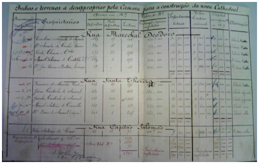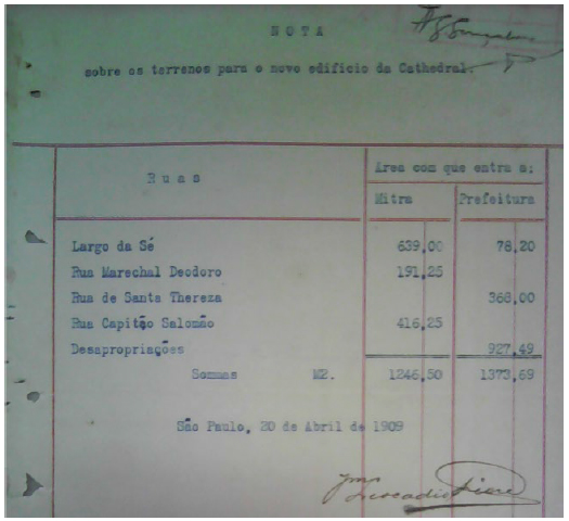 o terreno situado no Largo da Sé e que vem se aggregar no patrimonio municipal, occupado atualmente pela Cathedral, vale muito mais que aquelle que tem de ser desapropriado pela Camara si se quizer dar o valor real.38