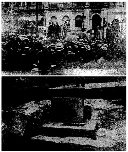 O arranjo de desapropriações foi sendo montado em esfera municipal pelo prefeito Antonio Prado, quem justificou as primeiras cifras desta operação já no início de 1908. Seu Ofício, apresentado na sessão de 20 de abril de 190832 da Câmara Municipal, trazia na costura do processo uma operação financeira de empréstimo externo com o London and Brasilian Bank Limited de Londres, e mediada pelo The Ethelburga Syndicate Limited de Londres, onde era reservada a soma de 1.200:000$000 descrita como sendo destinada para o “Paço Municipal e as desapropriações”. Logo, se reforçava uma arquitetura ainda maior desta rede de relações econômicas que unia “homens poderosos através do Atlântico”,33 aglutinando a presença estrangeira numa trama que Joseph Love (1982) atentou, dos negócios imobiliários na cidade.34 Na contraparte do processo, Dom Duarte não apenas passou por cima da imagem que se pretendia para aquela cidade, no plano material e simbólico quando, inclusive, os pilares de fundação do paço municipal chegaram a ser instalados no lugar anexo à Praça João Mendes (Figura 7). Foi o arcebispo também o ator que logrou em articular uma relação conciliatória das esferas públicas urbanas no evento da ereção da Catedral e Praça da Sé na cidade de São Paulo.
