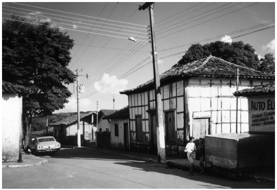 Alguns logradouros ainda mantinham certa dinâmica urbana, por apresentarem uma taxa de ocupação satisfatória para aquele cenário, caso do Largo da Matriz e das ruas Direita e da Cadea. Nestas duas últimas, estavam concentrados os imóveis mais valorizados de Pilar. Parte do que sobrou da elite de Pilar normalmente residia nessas ruas mais centrais, como na Rua dos Paulistas, composta por gente comum, mas também por “donas” e capitães. Uma classe identificada em Pilar, que não foi listada nos outros arraiais ou em Vila Boa, é a dos educadores, uma vez que encontramos um licenciado e um professor. O professor João Soares Baptista morava na Rua Direita nº 107, e o licenciado Joaquim Jozé Gomes Tição, na Rua da Cadea nº 180. A casa do licenciado, a famosa “casa de enxaimel”, era um dos imóveis mais valorizados do arraial, cujo rendimento anual era de 7$200 réis (Figura 13a).