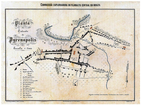 O processo de ruralização pelo qual passou Meia Ponte ao longo do Oitocentos fica evidente ao analisar a documentação primária e os relatos de viajantes, como o de Saint-Hilaire em 1818, quando aponta que “a maioria dos habitantes de Meia-Ponte se dedica à agricultura e como só vão ao arraial aos domingos, as casas permanecem vazias durante toda a semana”.124 No mesmo ano, D’Alincourt revela que aquela região era o lugar onde “melhor se cuida da agricultura”.125 Esse aspecto também fica evidente na toponímia, com a alusão nos nomes dos logradouros à vida no campo, caso das ruas do Curral, dos Porcos e das Bestas.