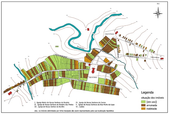Na Rua das Merces, onde foram cadastrados 18 imóveis, residia somente uma pessoa, Maria Thereza de Jesus, na casa nº 47. No Campo das Cavalhadas também só habitava uma pessoa, o Alferes Jozé Cipriano, no imóvel nº 261, assim como na Rua do Rozario, onde morava o Tenente Marinho Pereira na casa nº 258. Outras ruas possuíam somente 2 ou 3 imóveis ocupados,100 reforçando a ideia de uma cidade em vias de desaparecer.