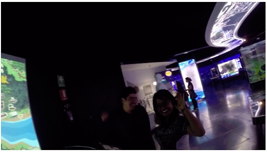 Os dados foram coletados por meio de uma “câmera subjetiva”, que capta as imagens a partir do ponto de vista do sujeito.26 Um(a) adolescente de cada grupo foi convidado(a) a utilizar a câmera na cabeça, registrando a visita em áudio e vídeo.27 Para desenvolver esta investigação, cada adolescente teve sua permissão de participação assinada por um responsável. As visitas duraram, em média, aproximadamente cinquenta minutos e ocorreram tal como seria em uma visita espontânea ao museu. Ou seja, o grupo de adolescentes recebeu o mesmo tratamento que teria se fizesse uma visita livre ao museu. Dessa maneira, todos os grupos realizaram as visitas sem o acompanhamento integral de um mediador, mas puderam acioná-lo para fazer questionamentos, tirar dúvidas e realizar interações ao longo do percurso.