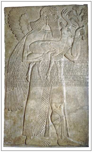 Um outro campo ou contexto característico de implementação da escrita no recorte mesopotâmico é a escrita monumental. A presença de inscrições em monumentos não é uma particularidade do cenário próximo-oriental;106 contudo, é característico da escultura monumental o seu eixo de produção fixado no centro palaciano e na figura do rei: o palácio estimula a produção de grande parte da comunicação oficial do período, sejam cartas, sejam inscrições reais. Apesar de aqui discutirmos a dimensão material dos tabletes cuneiformes, uma apresentação breve da relação entre texto e imagem em obras monumentais palacianas serve como estímulo para se observar o sentido amplo da materialidade da escrita e os problemas que ela pode exigir às pesquisas.