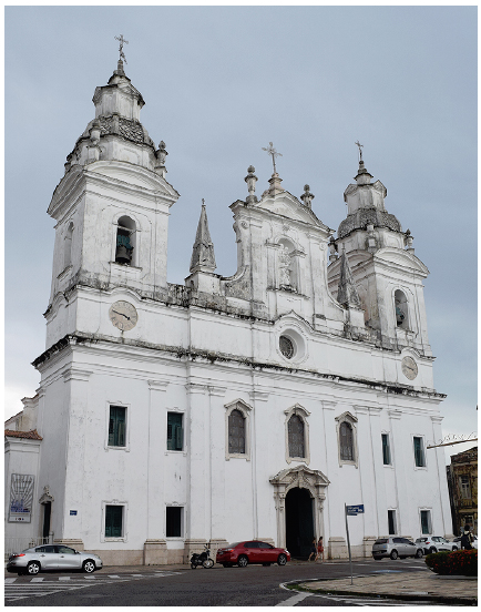 A Igreja da Sé (Figura 14), também conhecida como Catedral de Belém, situa-se no Centro Histórico da cidade, bem próximo a outros protagonistas arquitetônicos que cercam a praça D. Frei Caetano Brandão, como o Forte do Castelo, a Casa das Onze Janelas - antigamente Hospital Militar - e o Complexo Jesuítico de Santo Alexandre, que, juntamente com outros bens patrimoniais, constitui o Complexo Feliz Lusitânia. Simboliza outro período marcante da história da cidade, a Belém setecentista, que ainda vivenciava a forte atuação colonial de Portugal. Sua construção foi marcada por diversas interrupções, intervenções e passagens de diversos artistas e construtores, tanto em seu exterior quanto interior, predominantemente durante a segunda metade do século XVIII. Destacamos a intervenção do arquiteto bolonhês Antônio José Landi,39 um dos maiores protagonistas da história de Belém, que imprimiu sua assinatura em diversas obras na cidade.