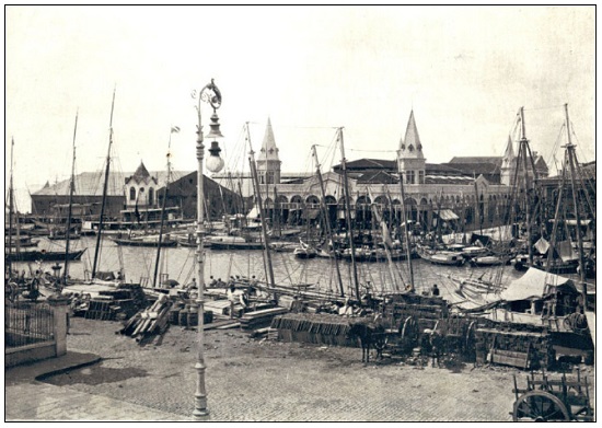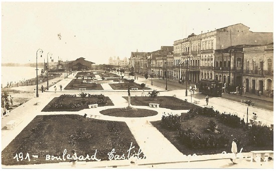 Apesar da bifurcação do boulevard próxima à Tv. Leão XII até a Tv. 15 de Agosto, ainda hoje é possível apreciar seus monumentos sob a perspectiva que se descortina a partir da Tv. da Companhia, com o Mercado de Ferro, até a Tv. 15 de Agosto, com a edificação emblemática da Port of Pará. Dispõe de calçadas arborizadas nos espaços públicos abertos e ajardinados, apresenta homogeneidade nas fachadas dos sobrados de arquitetura eclética e seus materiais são utilizados em razão da funcionalidade. Conta com infraestrutura e serviços urbanos instalados, assim como mobiliários urbanos. Nunes denomina o Boulevard da República como “boulevard-cais”,49 um boulevard que convergia todo seu olhar à Baía do Guajará, no qual foi alocado o porto da cidade e onde continuaria a ser o local de entrada e saída de pessoas e das mais diversas mercadorias. O glamour desse “boulevard-cais” seria diferente em Belém: em lugar das vitrines chiques com seus espelhos e vidros, entrariam em cena o porto e os mercados da cidade - o Mercado de Peixe e o Mercado de Carne -, que o configurariam como um empório comercial.