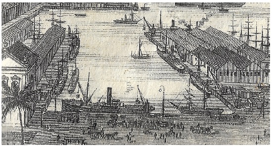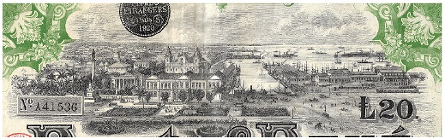 Para todos os efeitos, tanto o Port of quanto o Boulevard implementariam alterações radicais não apenas na figuração formal do traçado urbano de Belém, mas efetivamente no que significam em sua funcionalidade. Ambos estão diretamente relacionados com os fluxos urbanos emergentes de uma cidade moderna, de uma sociedade envolvida por novos meios de produção e troca e especialmente pelo intercâmbio de ideias vinculadas ao novo estilo de vida promovido por essas vias: a amplitude do Boulevard, que logo se abriria à passagem do automóvel, e o Port of, com as idas e vindas dos vapores, estabelecem, para sempre, as conexões com o moto continuum avassalador da modernidade. Essas conexões dinâmicas materializam-se de forma trans-histórica na gravura de uma das apólices da Port of Pará (Figuras 2 e 3), empresa concessionária do Porto de Belém no momento da intensa comercialização da borracha.