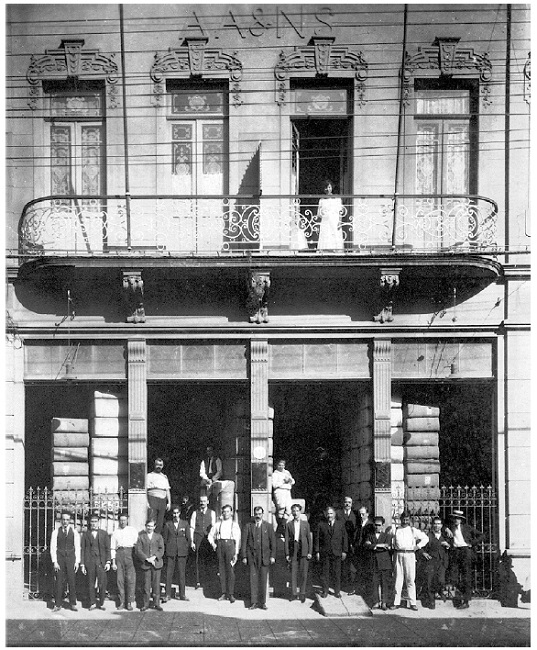Apesar de se inserirem no grupo dos pioneiros, outras lojas de sírio-libaneses já funcionavam na rua quando a AA & NS foi inaugurada. O primeiro estabelecimento data de 1887, sendo de propriedade de Benjamin Jafet. Em 1895, já eram seis as casas de armarinhos de proprietários sírio-libaneses na rua. Mas foi na virada do século que ocorreu uma disseminação vertiginosa, e no ano de 1901, foram contabilizados mais de quinhentos estabelecimentos sírio-libaneses na área formada pelas ruas Vinte e Cinco de Março, Ladeira Porto Geral, Florêncio de Abreu e Cavalheiro Basílio Jafet.14 Boa parte desses estabelecimentos fabricava e/ou comercializava tecidos e/ou armarinhos, entretanto, outros produtos também podiam ser lá encontrados, como roupas, calçados, bolsas, artigos em couro, tapetes, malhas, toalhas, colchas, entre outros.