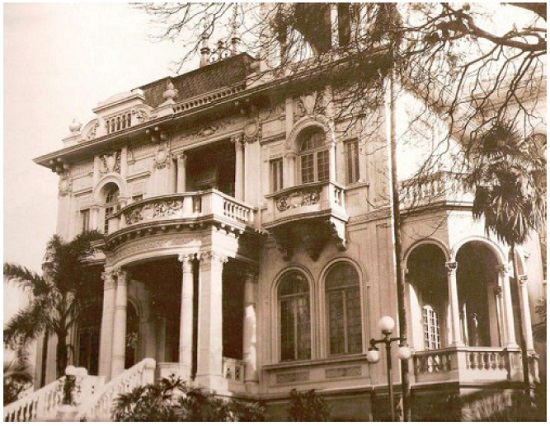 Dito isso, os Abdalla mudaram-se para nada menos do que um casarão no número 65 (atual 1.636) da Avenida Paulista (Figura 11).16 No endereço mais nobre da cidade à época, a residência da família ocupava um ponto privilegiado, um lote vizinho ao belvedere (onde hoje se encontra o vão livre do Museu de Arte de São Paulo - Masp), um dos poucos mirantes da cidade naqueles tempos. A família adquiriu o imóvel de seu residente anterior, o empresário brasileiro Feliciano Lebre. Já o primo Nagib construiu do zero o casarão para sua família, localizado no número 98 (atual 1.313) da mesma avenida (Figura 12). Contratou arquiteto, paisagista e importou materiais de construção e revestimento.
