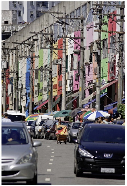 A historiadora estadunidense Nancy Green3 observou essas mesmas características (comércio de moda popular atacadista e complementar; localização central em metrópoles; proximidade à infraestrutura de transportes; e incidência de comunidades imigrantes) em bairros de Paris e Nova York, cunhando, pela primeira vez, o termo “distrito têxtil urbano”. Segundo Green, trata-se de territórios localizados nos centros de cidades concentradoras de relações de poder, relevantes economicamente, e influentes culturalmente nos países dos quais são parte. Assim, metrópoles de países que ocupam diferentes posições no sistema capitalista mundial têm regiões especializadas na produção e venda de roupas e tecidos com características convergentes simultaneamente a singularidades locais.