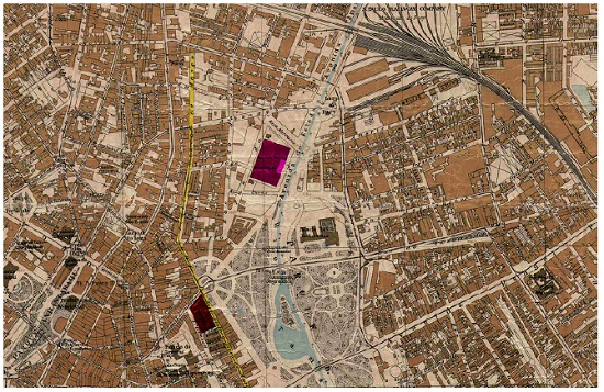 A localização dos mercados na Vinte e Cinco de Março era duplamente estratégica. Em relação à inserção urbana, na segunda metade do século XIX, essa área correspondia às extremidades da mancha urbana de São Paulo, constituindo parte do primeiro anel perimetral da cidade, elaborado em 1850. Dessa maneira, viajantes e comerciantes que chegavam do norte ou oeste do estado podiam abastecer-se no complexo de mercados e seguir viagem, alcançando a estrada para Santos, sem atrapalhar o tráfego nem causar tumulto no centro urbanizado, à época ainda restrito à colina histórica e arredores.9
