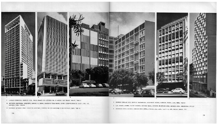 No ensaio, Hitchcock faz referência a obras de arquitetura moderna realizadas na América Latina anteriores a 1945, cuja relevância internacional já estava reconhecida, como o Ministério de Educação e Saúde (1936), de Costa, Niemeyer e equipe e o Aeroporto Santos Dumont (1940), de Marcelo e Milton Roberto, no Rio de Janeiro, ou a Faculdade de Engenharia da Universidade da República em Montevideo, de Julio Vilamajó (1937). Mas a coleção propriamente apresentada pelo catálogo estava formada por 47 obras realizadas entre 1945 e 1944, envolvendo 38 estúdios de arquitetura. Nem todos esses arquitetos estavam consagrados internacionalmente, como estavam Niemeyer e Costa no Brasil, Carlos Raúl Villanueva na Venezuela, ou Mario Pani no México. Bem como nem todos tiveram encomendas públicas da mesma envergadura entre 1945 e 1955, o que pode explicar certas assimetrias e o fato de que as participações de Argentina e Chile, por exemplo, se limitarem, naquele momento, a obras privadas. Mas a coleção de 1945-1955, no seu conjunto, é comparável em extensão à coleção de 1932 e suficiente para confirmar a relação entre “qualidade e quantidade”, um dos aspectos sobre os quais Hitchcock insiste no ensaio introdutório: