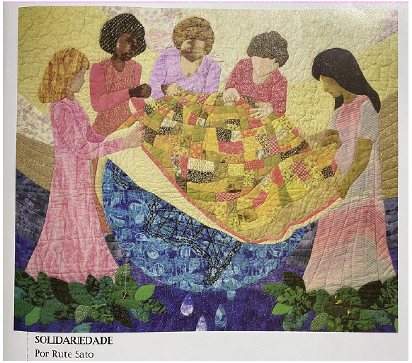 O forte laço de amizade e confraternização que sela a relação entre as artistas têxteis do Clube, atualmente todas as mulheres, à exceção de um dos sócios fundadores, pode ser representado pela tela Solidariedade (Figura 1) de Rute Sato, graduada em Desenho Industrial e professora de patchwork.