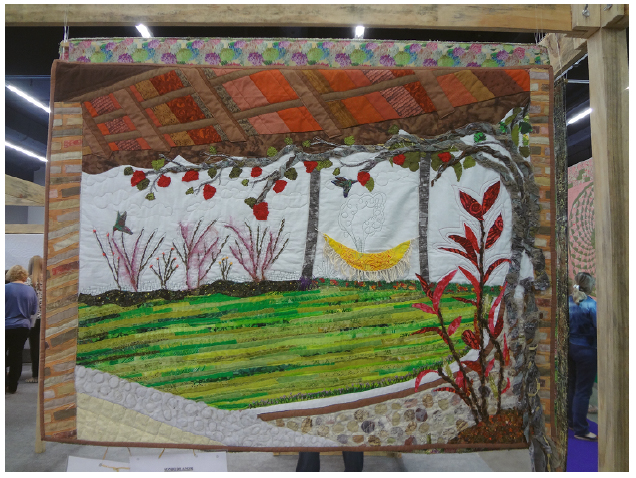Analisando o quilting afro-americano, Teri Klassen assinala que, embora a cultura material familiar tenda a ser conservadora, “uma nova (ou reinterpretada) forma cultural oferece oportunidades para contestar e reconfigurar os sistemas de valores”,36 o que pode sofrer disputas importantes se houver “agendas ideológicas” em jogo. Indagamos nesta pesquisa se seria o caso do patchwork artístico, cujos sentidos, para além de conservar certos valores, como os familiares, podem trazer também outros questionamentos relativos à sociedade, mesmo utilizando a natureza como sua expressão pictórica.