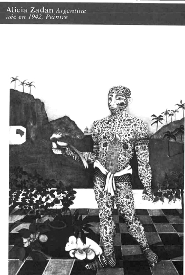 Em entrevista à Radio France, em 2016, Zadán se recorda da exposição, da qual teria sido uma das responsáveis (embora sem receber os devidos créditos), ao ajudar a escolher a lista de sul-americanos presentes. Segundo a artista, a mostra começou com um “mal-entendido”. O nome inicial seria “Artistas latino-americanos em Paris”. Depois, sem se entender como, agregou-se “frutos do exílio”, o que caiu muito mal na comunidade porque diversos artistas lá estavam há décadas, de sorte que não se encaixariam na categoria “exilados”. A artista ainda se lembra que o patrimônio francês (certamente se referindo ao Cnap) havia proposto a aquisição de uma obra de sua série “Tatuados” (provavelmente a que consta no catálogo; ver Figura 4). Ela explica se tratar de uma sutil crítica política aos ingleses, pois as tatuagens remetem à ideia de pirataria, e com isso ela procurava aludir à Crise das Malvinas, uma guerra iniciada em 1982 entre ingleses e argentinos pelo controle daquele arquipélago. A artista, no entanto, teria optado por não vender a obra. Mas, no ano seguinte, como se viu, ofereceu obra similar à aquisição do Cnap.76