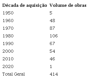 Com vistas a identificar a presença dos artistas latino-americanos no Cnap, construí uma base de dados com 410 entradas de obras, englobando os três países com o maior número de aquisições: Argentina (210), Brasil (120) e México (80).35 Um dos critérios de agrupamento possível é o da temporalidade de ingresso das obras na coleção. Nesse caso é perceptível que as décadas de 1970 (com 87 produções) e, em especial, 1980 (106) são aquelas que apresentam um maior volume de aquisições. A década de 1990, imediatamente posterior à “Magiciens de la terre”, assinala uma queda expressiva de quase 40% (67). Já os anos 2000 - quando supostamente a mundialização do sistema artístico teria se tornado um “fato” -, os números não respaldam tanto otimismo, pois a quantidade de ingressos de obras cai para praticamente metade (54) daquela registrada nos anos 1980.