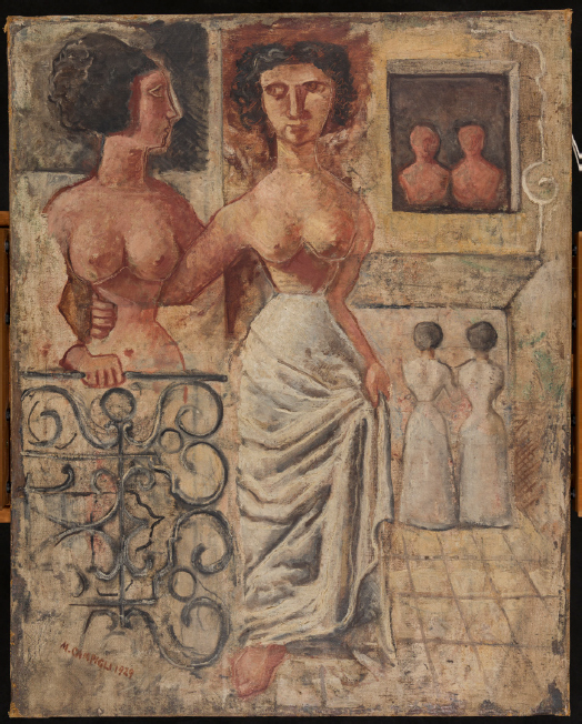 Assim, a feitura das pinturas presentes no acervo do MAC USP se circunscreve nesse cenário em que o artista esteve em trânsito, morando entre Paris, Milão, Roma e Veneza e testemunhando movimentações artísticas em diferentes contextos político-sociais. Nesse sentido, vale ressaltar que, sob o fascismo na Itália, Campigli teve laços com o regime seja por participar de mostras do Novecento Italiano, seja por ter trabalhado como muralista com Mario Sironi e outros.29