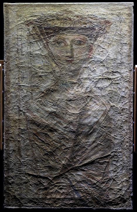 As obras que analisaremos a partir de Mulher velada (Figura 20), datadas depois de 1946, apresentam uma continuidade conceitual e visual com aquilo que o artista vinha produzindo antes, mas sua maneira de trabalhar a superfície da tela muda, sobrepondo mais camadas de tinta, empastando e texturizando mais. A tinta é colocada, depois arranhada, removida e muitas vezes recolocada, conforme o processo característico do artista, já descrito.
