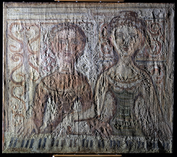 É possível pensar que o artista quisesse simular a própria parede, conferindo uma sensação de afresco ao seu espectador.