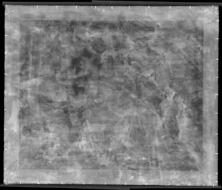 De fato, na catalogação da obra, e mesmo no processo de sua incorporação ao antigo MAM, a obra aparece como pintada à têmpera sobre tela,49 o que justificaria a opacidade. Contudo, as análises de FTIR indicam que a obra tenha sido possivelmente feita com uma mistura de têmpera e óleo, e não apenas com têmpera. De fato, algumas texturas dificilmente teriam sido obtidas apenas com o uso de têmpera, como atesta a imagem obtida com RAS (Figura 2), evidenciando que, em algumas regiões, uma espessura de pincelada dificilmente reproduzível apenas com têmpera devido ao seu tempo de secagem. Ainda assim, mesmo com óleo, a camada de tinta é exígua, como fica evidente na imagem obtida com o registro de luz transmitida (Figura 3)