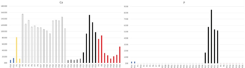 Confirmação da presença de preto-de-osso (C, Ca3(PO4)2).