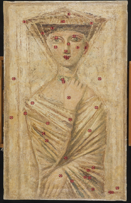 Nos últimos anos, essas obras foram estudadas no âmbito do projeto temático Fundação de Amparo à Pesquisa do Estado de São Paulo (FAPESP) Coletar, identificar, processar, difundir: o ciclo curatorial e a produção do conhecimento4 em duas instâncias. Na primeira, a pesquisa ocorreu pela lente das ciências humanas, e, na segunda, pelas ciências exatas. Na primeira, investigou-se o contexto em que as obras foram produzidas, suas procedências, trajetórias e os agentes que as levaram até o antigo Museu de Arte Moderna de São Paulo (MAM) e, depois, ao MAC USP. Realizou-se ainda uma análise extensiva das suas soluções plásticas e, por fim, a recepção que o artista e suas produções tiveram em São Paulo, sobretudo no contexto das primeiras edições da Bienal de São Paulo.5 Na segunda etapa da investigação, o Laboratório de Arqueometria e Ciências Aplicadas ao Patrimônio Cultural (LACAPC), do Instituto de Física da USP (IFUSP), realizou análises químicas e físicas, com técnicas não invasivas, cujos resultados levaram a interpretações e discussões que atravessam os dois campos do saber.