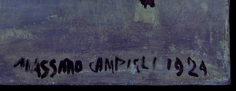 Caso único entre as demais pinturas do MAC USP, essa obra expressa aquilo que Campigli afirmava ter como método de trabalho, isto é, o uso de telas antigas, já pintadas, “as quais raspo até tornar irreconhecível a pintura, mas não além; deixo um fundo marmorizado e liso que exploro, deixando algumas partes da pintura sem cor ou com pouquíssima cor em contraste com o restante bem definido”78.