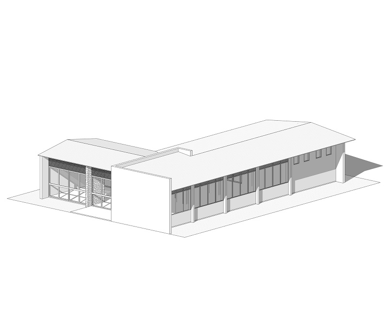 A estratégia dos projetos-padrão, abandonada em grande medida na construção de escolas, fóruns e postos de saúde, foi adotada sem restrições na agricultura. 23 Em vez de representar uma estagnação, a adoção de padrões garantia, além de maior controle construtivo e econômico, a possiblidade de execução de tão grande número de projetos pelos profissionais do Dema. Dentre esses desenhos estão as 28 Escolas de Iniciação Agrícola, que, seguindo o mesmo princípio das antigas Escolas Práticas da Agricultura, destinavam-se ao ensino técnico dos filhos dos lavradores, com vistas à formação de uma mão de obra qualificada e mais produtiva, de acordo com as exigências do desenvolvimento industrial. Porém, em oposição à monumentalidade e à presença marcante das edificações do Estado Novo, as novas escolas apresentam feições bastante convencionais, com planta retangular em alvenaria rebocada e telhado aparente em quatro águas.