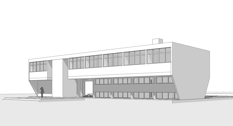 Os projetos dos edifícios foram feitos por Bernardo Castelo Branco e Mario Guzmann Táppia. 26 São edifícios de formas prismáticas, que abrigavam salas de estudo e de trabalho cujos principais pontos da estética moderna foram explorados de diferentes maneiras: o edifício-lâmina sobre pilotis no Date, a volumetria pura que intercala fachadas envidraçadas e empenas brancas que cercam o pátio interno no Cetrec ( Figura 6 ), a relação harmoniosa entre volumes de geometria equilibrada ligados por um eixo de circulação na DCS-Dema. As lajes planas, as faces envidraçadas, o brise-soleil e a manipulação topográfica atestam a modernidade de suas soluções e a desenvoltura dos arquitetos da Secretaria da Agricultura que, se por um lado promoviam desenhos singelos, lançando mão de técnicas e materiais convencionais em projetos-padrão, concomitantemente desenvolviam com desenvoltura o repertório da arquitetura corrente, mesmo que os arranjos espaciais permanecessem rígidos e pragmaticamente controlados. Grande parte dos prédios desse conjunto ainda está em uso, tendo sofrido várias intervenções ao longo do tempo.
