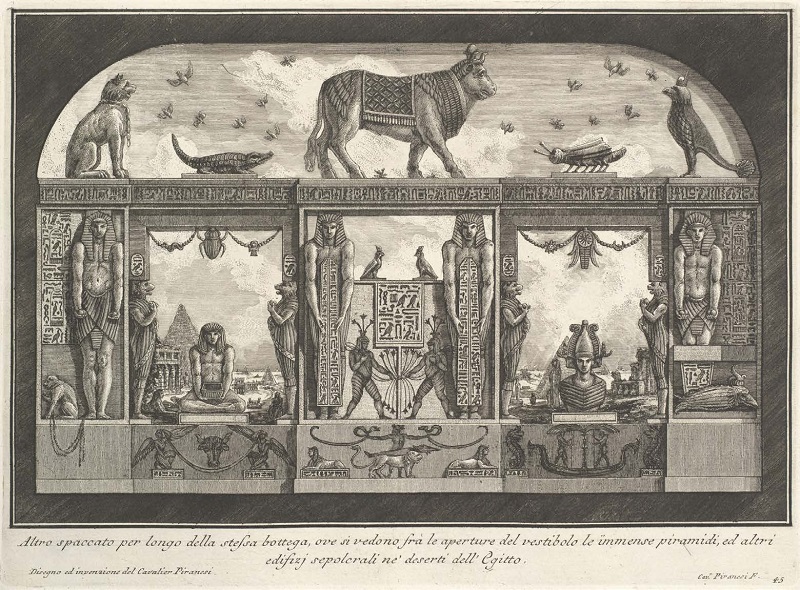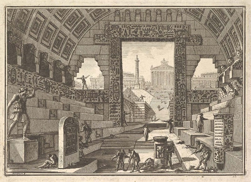 Giambattista Piranesi não era alheio a esse repertório que aflorava sobre o Egito Antigo e tinha especial apreço pelas referências situadas em Roma. Desde o século XV, Roma tinha, paulatinamente, adquirido um papel central na cultura europeia, devido à valorização de suas ruínas imbricadas no território da cidade, evidências físicas que possibilitavam uma permanente revisão crítica sobre a arquitetura antiga, proporcionando um ambiente em que o debate arquitetônico estava atrelado à exploração arqueológica.