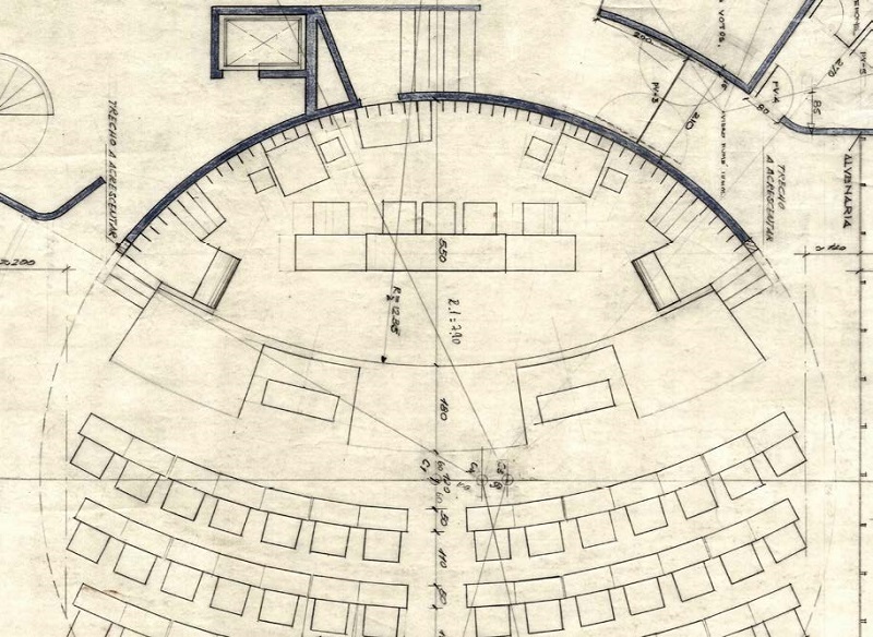 Esse primeiro ciclo de acomodação recíproca entre o edifício e seus usuários pode ser observado na planta-síntese do período 1960-1970. As alterações, precariamente planejadas, afetaram a fluidez do edifício – por exemplo, o trânsito entre os dois plenários era inicialmente livre – e levaram à perda da integração visual com a Praça ( Figura 3 ).