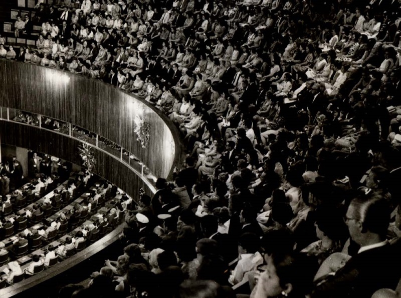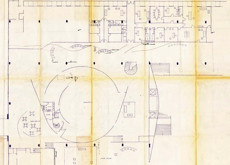 As alterações de projeto foram numerosas, a ponto de inviabilizar a identificação de uma versão definitiva. Diferentes versões, totais e parciais, se sucederam ao longo da execução, sem que houvesse uma última versão completa. Além disso, até cerca de 1964, “os acabamentos executados em regime de urgência, para atender ao cronograma da inauguração, tiveram como consequência direta um perene estado de necessidade de complementação da obra” 43 ( Figura 2 b). Assim, também não é possível referir um “estado de completude inicial”, pois, entre a inauguração e a conclusão posterior da obra, o edifício se modificou rapidamente.