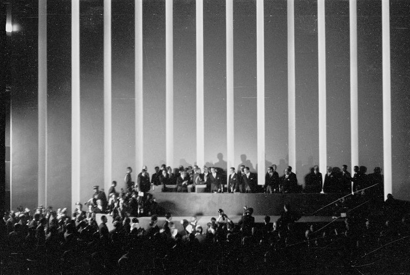 No Palácio do Congresso […] a composição se formulou em função […] das conveniências da arquitetura e do urbanismo, dos volumes, dos espaços livres, da profundidade visual e das perspectivas e, especialmente, da intenção de se lhe dar um caráter de alta monumentalidade, com a simplificação de seus elementos e a adoção de formas puras geométricas. 5
