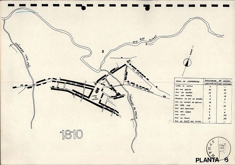 As Décimas Urbanas aparecem citadas em alguns trabalhos iniciais como o de Luís Saia e Jaelson Trindade no artigo Evolução Urbana de São Luiz do Paraitinga.31 Objetivando identificar as permanências e transformações do núcleo urbano, os autores recorrem pontualmente ao documento para verificar quem pagou ou não o imposto, cruzar alguns nomes ali anotados com outras tipologias documentais, saber o nome e a quantidade de logradouros etc. 32 Elas também foram utilizadas pela equipe do Instituto do Patrimônio Histórico e Artístico Nacional (Iphan) no processo de tombamento da cidade de Pirenópolis, pelas quais os técnicos construíram mapas para entender a evolução urbana do sítio entre os séculos XVIII, XIX e XX. 33