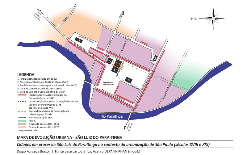 No caso de São Luiz do Paraitinga (São Paulo), a espacialização dos dados das Décimas Urbanas de 1841 foi conclusiva para compreender a morfologia do núcleo urbano tombado. O primeiro tombamento do município aconteceu em 1982 pelo Condephaat, 95 e o tombamento em âmbito federal ocorreu de forma emergencial devido a uma enchente que destruiu parcialmente a cidade em 2010. Em ambos, os estudos de Luiz Saia e de Joelson Trindade foram importantes para embasar os processos. 96