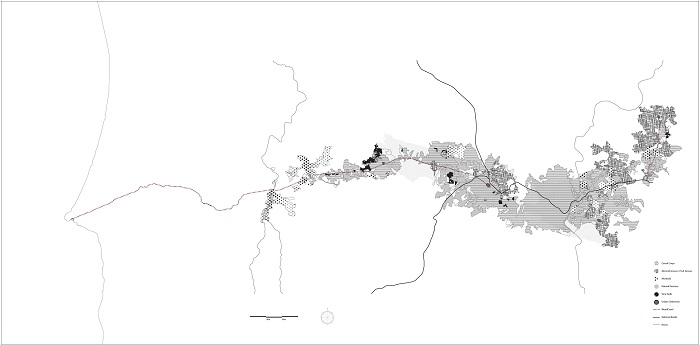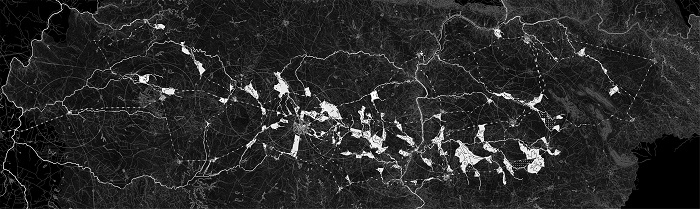 In this way this work also envisioned the expansion of the proposed system, which total potential could not be fully explored yet. Through its flexibility it is possible to imagine a total reconfiguration of the territory, which back bound relays on the reactivation of a historical territorial axis. With this we flag the importance of integrating the historical landscape into the contemporary development of the society, ruled both by operational and meaningful constraints.