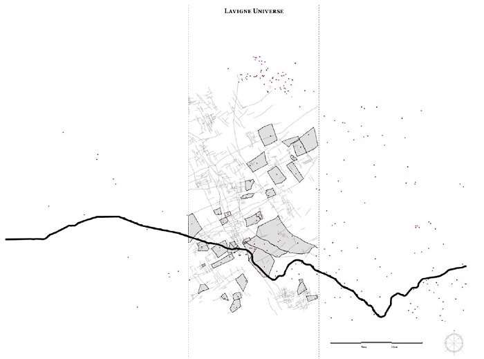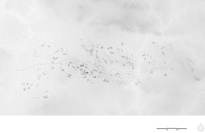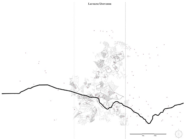Even possible traces of a Roman centuriation, whose layout or even existence could not yet be precisely defined, do not have the same transmissibility as the chosen set of shapes. The centuriation on this area (if it existed), did not appear to have established a dominant organization of the territory and “the forms of this network therefore appear as the product of a process of self-organized creation developing in time and space”54. Thus, regarding the chosen network, Lavigne concludes that “the hypothesis of a Roman centuriation, a planned object traditionally mobilized to interpret all networks somewhat extended in space, therefore seems to us to have to be discarded”55.