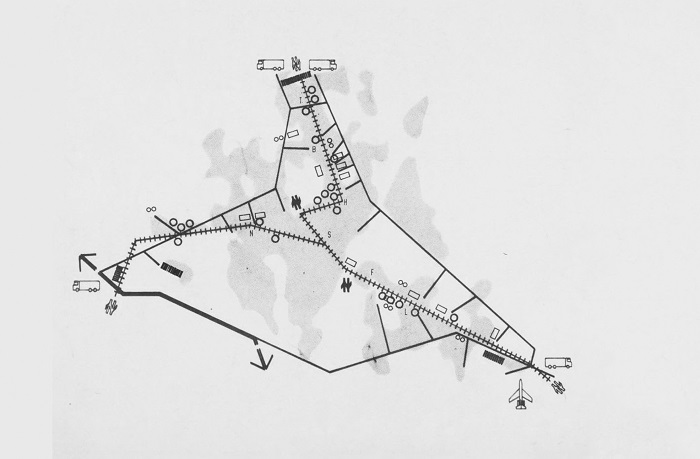 [...] a learning apparatus that is flexible and mobile, with the capacity to continually adapt to technological advances [...]. By relying on the existing rail network, he proposed to go beyond the traditional campus typology, taking the territory and its transport connections as the new scale of the learning process.42